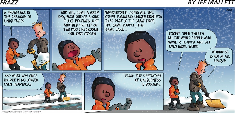 The cartoon at left was shamelessly stolen from the hilarious comic strip "Close To Home" by John McPherson. It perfectly epitomizes the world-view of those athletes who make it to the Olympics. Incidentally, it came out three days before Lindsey Vonn skied with a torn anterior cruciate ligament and an artificial knee from previous injuries, at age 41. She has said that her latest injury, which (again) required her to be air-lifted off the slope, won't stop her. I can appreciate the "can-do" spirit and her strong motivation but I have to question whether the win-at-any-cost mindset is entirely rational.