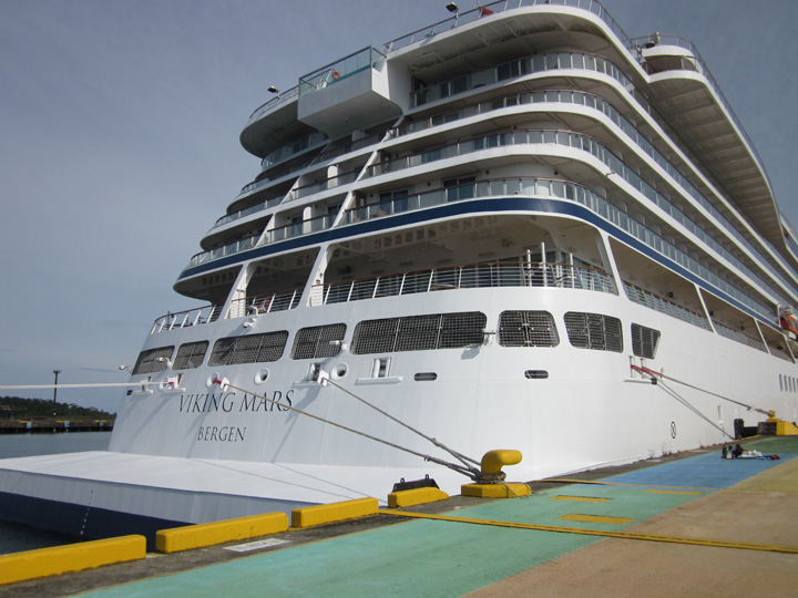We've recently returned from a trip to Central America, on the Good Ship Viking Mars. And I do mean "good," because all of our experiences with Viking—so far, three river and three ocean cruises—have been excellent; this cruise was no exception. That's Viking Mars above, but without seeing the name on the bow or stern you could easily mistake her for any other Viking ocean vessel: they're all built to a pattern, in the same shipyard in Italy.