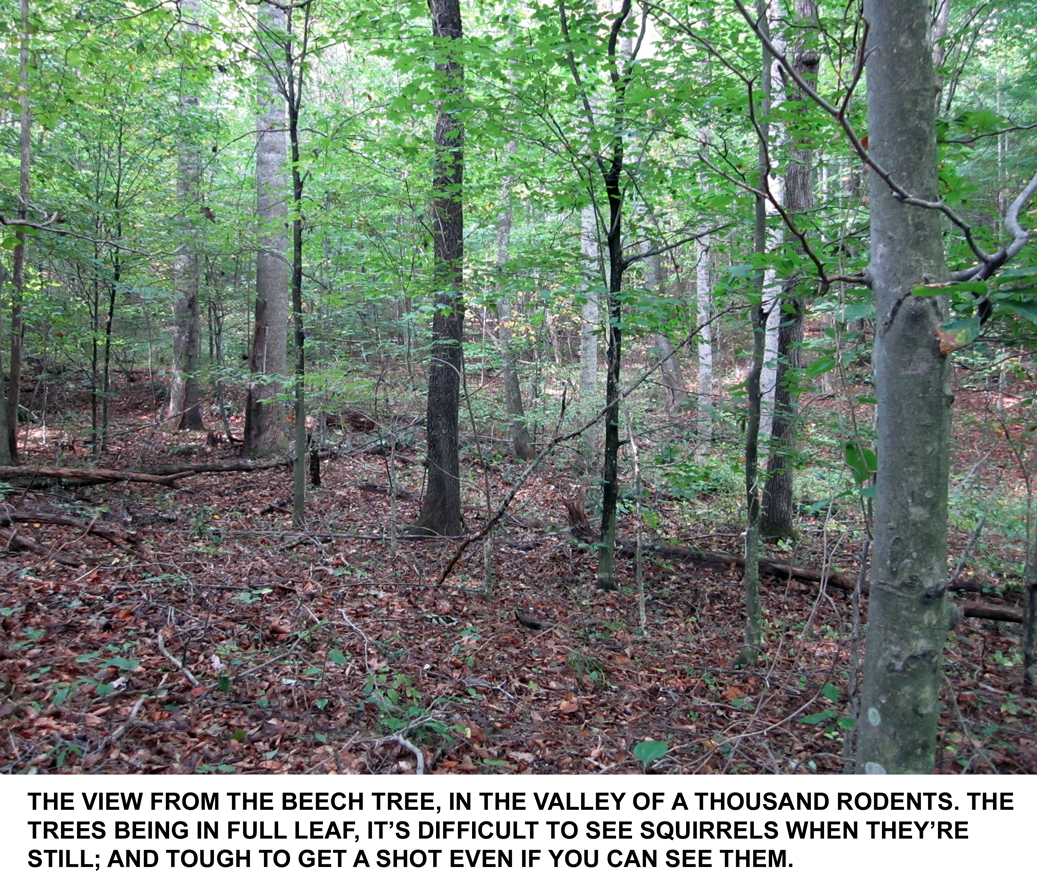 Today was Opening Day, the first day of squirrel season and therefore a High Holy Day of Obligation. As is my wont I went to the Valley Of A Thousand Rodents, to perform the obligatory rites under The Beech Tree. As is their wont, the Rodents failed to show up. Nary a squirrel did I see, but it was a good day anyway.