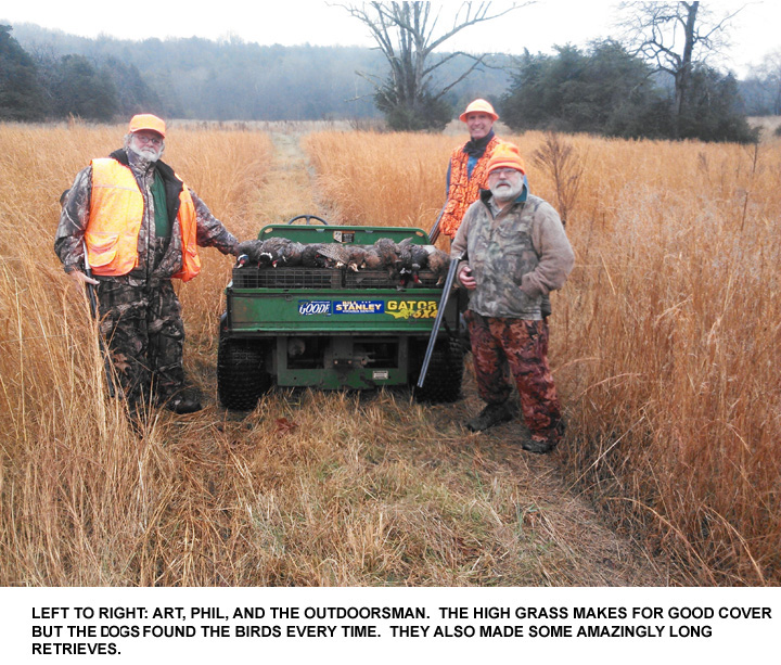 Virginia bans Sunday hunting, with a couple of exceptions: one of them is gamebird shooting on a licensed preserve. So three of us went to Holland's preserve today: my colleagues Phil and Art, both of whom have hunted there with me before.