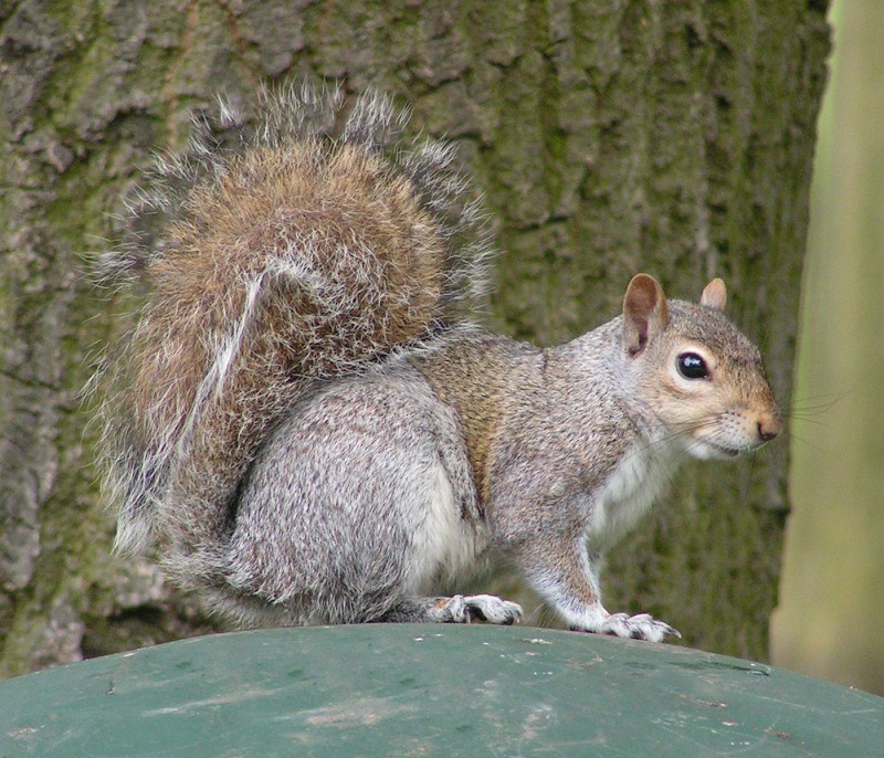 Twenty minutes or so later, as the light was fading, another one came out, and ran down a tree trunk. In my experience squirrels eat a tree from the top down, but this one may have decided it was safe to come down and scavenge among the numerous acorns and beech nuts on the ground. Big mistake: he got halfway down the trunk and he, too, went to The Great Nut Cache In The Sky. Both of them were cocky and naive young-of-the-year males whose stupid genes won't get passed on. We call those "fryers."