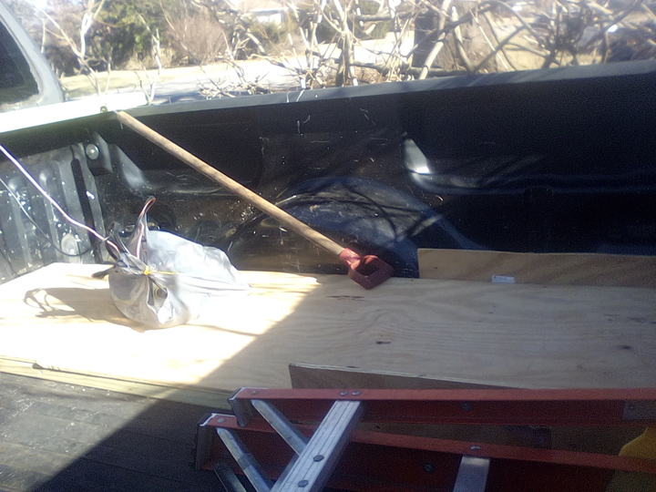 Finished the truck job this morning: built a new ramp using a couple of treated 2x2's and a sheet of plywood I had in the garage. As the old saying has it, "With God and a lot of scrap lumber, all things are possible."