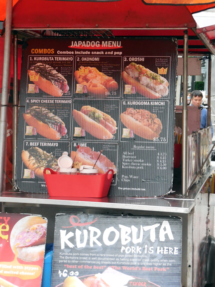 Vancouver is a very ethnically-varied place and a substantial proportion of the population is Asian or Indian in origin. That accounts for such horrors as what I can only call "ethnic hot dogs." Tandoori style hot dogs? Teriyaki hot dogs? These things would be unthinkable—in fact, they would likely be felonies—in the Bronx neighborhood where I grew up. Hot dogs, as every Bronx Boy understands, were intended by God to be vehicles for mustard (and not that yellow crap, either) and sauerkraut! I grew up eating hot dogs, hot dogs were my friends, and I say if you put tikka sauce or wasabe on it...it isn't a hot dog. I don't know what it is, but it's something else.