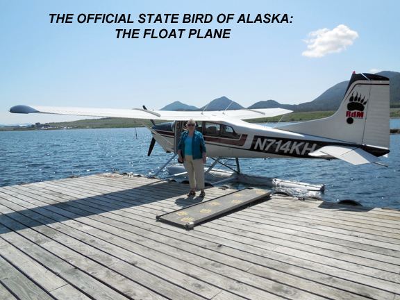 Juneau is also where the United States Bald Eagle Fleet has its home port. We saw dozens of them, glaring down at the tourists from the trees, hoping someone would die so they could strip his carcass of flesh. Juneau also has a few street pigeons (how on earth did they get there?) even though you’d think these would have been easy meat for the eagles. Speaking of birds, when we were in Ketchikan we went for a ride in a float plane, the Official State Bird of Alaska. Float planes are everywhere: far more common than eagles, even.
