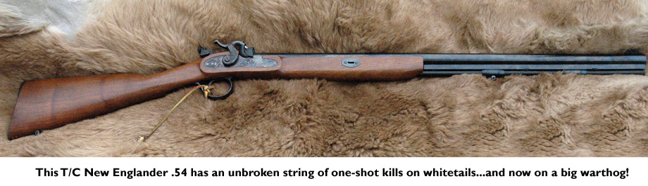 This kill was a classic example of how you don’t need high velocity. I was using T/C's 435-grain cylindrical "Maxi-Hunter" bullet, with 90 grains of powder under it. It was moving at a very leisurely pace, perhaps 1200 feet per second. To a person used to a high-velocity rifle, this doesn’t sound very impressive, but that big bullet more or less punched a core out of that warthog that was at least 14mm in diameter. I never recovered it, needless to say, nor did I expect to do so. Those big bullets always pass all the way through any animal that size.