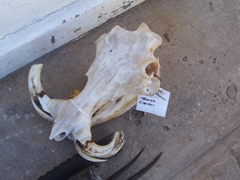 He was a very old boar, perhaps 11 to 12 years old, and even though his tusks were worn and one was broken off from fighting, they were very nice. Cornie was of the opinion that he’d not have made it through another year, so in addition to being a very good trophy, as an animal well past his prime he was a good choice. I asked why the pig let us get so close. “Well,” Cornie replied, “this guy was very old, and he probably had lost some or all of his hearing; and he was likely almost blind.” I wasn’t sure what to think about that answer! It would appear that the only warthog I could stalk was a decrepit Senior Citizen who was both blind and deaf! But he was a fine trophy, any way I looked at it—using the SCI standard he measured a total of 62 cm—and I was satisfied. The Old Piggie went to market on the back of Cornie’s hunting vehicle, and his tusks will eventually decorate my office wall.