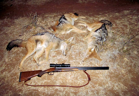 Three of the jackals shot from a hide while waiting for an ostrich.