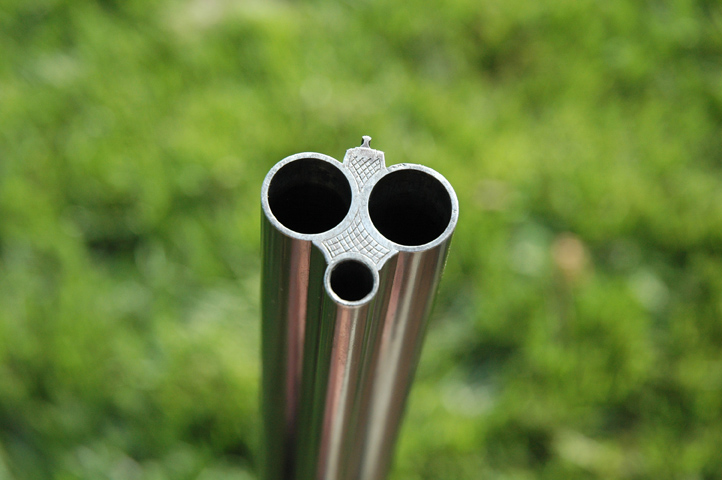 A word of caution is in order with respect to calibers in the rifle barrel. Many individual gunsmiths had their own proprietary cartridges, and all of them used their own gauges to measure bore size and so forth. Take any rifle caliber marking on a drilling with a grain of salt, and if in doubt have a chamber cast made to determine what, exactly, it shoots. Mine is unusual in that the exact caliber is indicated. Most drillings have a very vague indication, if any at all.