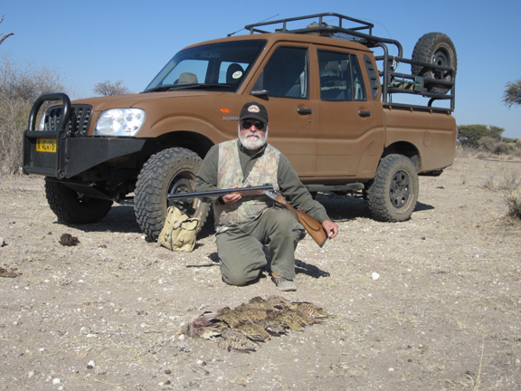 Three years ago on a plains game hunt in Namibia I had a great time, and killed some fine trophies; but not having thought to bring along a shotgun, I was unable to shoot any of the innumerable game birds that we saw on our stalks.  In July of 2013, I did a dangerous game hunt in the far eastern end of the Caprivi Strip, followed by a few days in central Namibia. Knowing that I’d be back in prime game bird territory again, while preparing for the trip I decided to remedy my previous oversight.