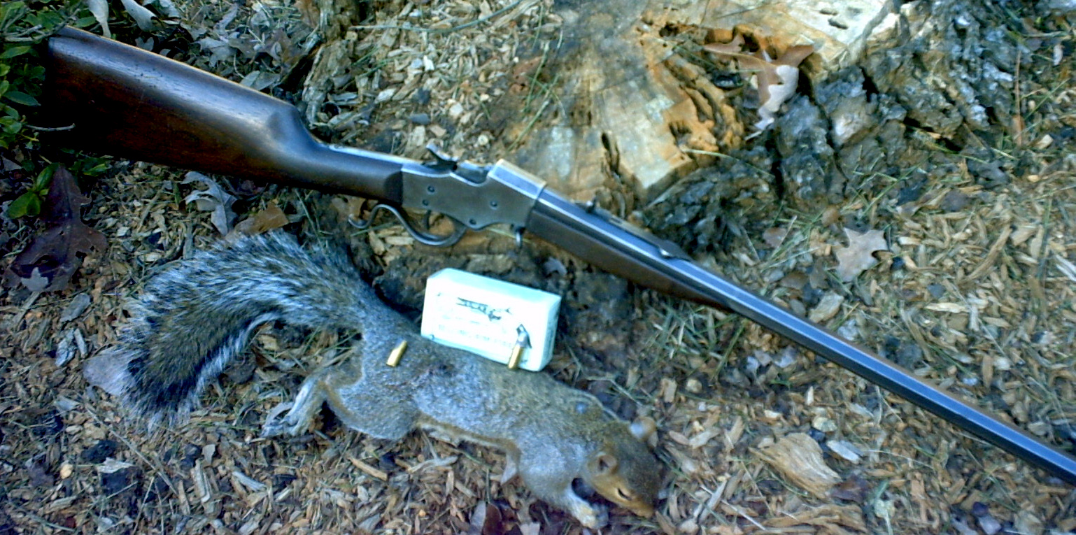 A .32 rimfire...the ammunition is obsolete, but amazingly, it's available in limited amounts, albeit at a ruinous price. I actually have a few rounds of copper cased .32 Rimfire that are almost certainly older than the rifle, and may very well not go off; and of course they're loaded with black powder. I didn't want to shoot them up, anyway.