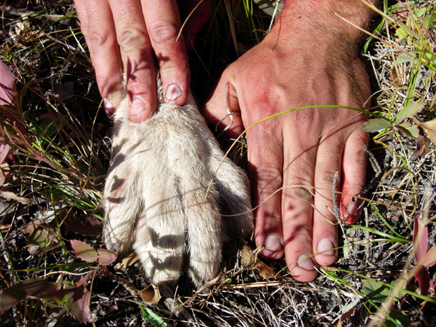Jeff basically jogged the five miles back to camp. He hadn’t brought his camera with him that morning. Upon his return to camp, he excitedly told cousin Jake of his adventurous morning. They both returned to the scene of the kill and took photos and skinned the wolf and returned to camp. Jeff checked his GPS and determined he was 26 miles from his truck.