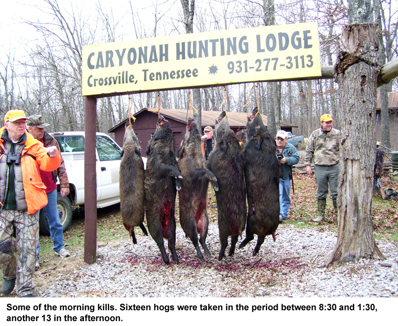 I have just returned from the Caryonah Lodge in Crossville, TN, a venue for shooting feral hogs. This was a two-day trip, I was part of a group of 29 hunters from several states (New Hampshire to Texas) who converged on the lodge for the weekend of December 11-13th.