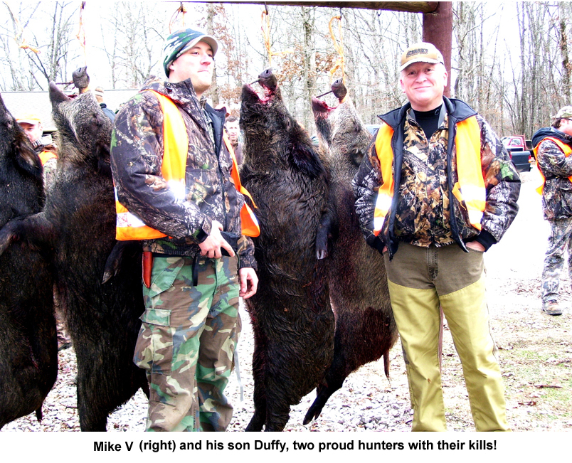 Once living only in the forests of Europe, the wild boar was introduced into Tennessee in 1912 by wealthy English sportsmen, found the hills and hollows to his liking and grew even more fierce as he multiplied in the mountains. Fast and dangerous, he sports razor-sharp tusks and hulking shoulders to back up his short and cunning charges. A foe worthy of any huntsman's steel. Now an mixture of both the Russian Wild Boar and the famed southern "razorback," he has, if anything, gained a more savage temper - YOU'LL BE PROUD OF YOUR TROPHY BOAR!