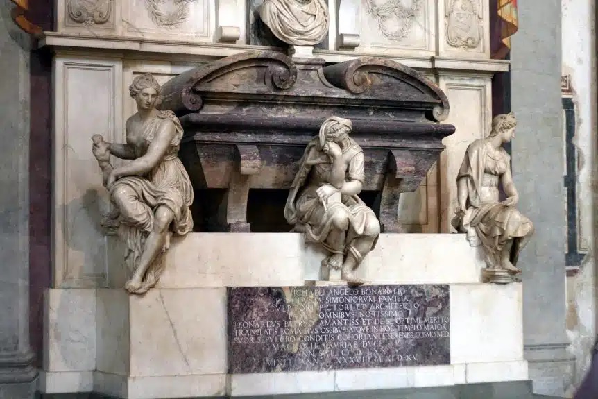We walked around to various places: oh, how we walked. All day we walked. My feet, by the end of that day, hurt worse than they did in Basic Training. But we did see many beautiful sites, of which there's an abundance in Florence. We declined the three-hour wait to get into the Uffizi gallery, but we did visit the Basilica Santa Croce. Many very famous and important people are entombed there, including Michelangelo Buonarotti and Galileo Galilei.