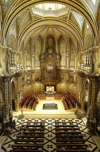 Our first port call was Montserrat, where there is a Benedictine monastery. After a room-service breakfast we hoofed it down to a motor coach for an hour's ride to this place. Well, the coach ride was an hour: when we got there we had to transfer to a cog railway up one of the steepest slopes I've ever seen outside of the Swiss Alps.