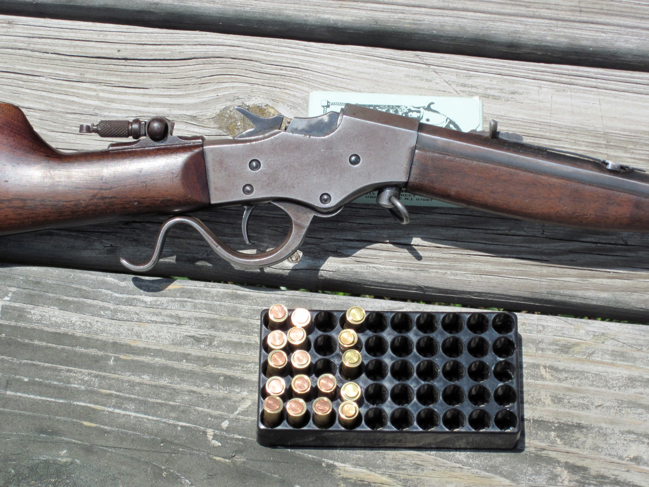 Intrigued by the notion of as thoroughly “English” a style of gun as could be imagined being produced in Massachusetts, I took a look at my own Stevens Favorite. This is a “No. 18,” in .32 Rimfire, with a full octagon barrel, rather than the standard half-round, half octagon style. I had owned it for years and hunt small game with it. It was in very sound, shootable condition, but the original finish was completely worn off. I'd added an original tang sight, obtained from Classic Firearms & Parts in New Hampshire to complement the Beach patent folding front sight.