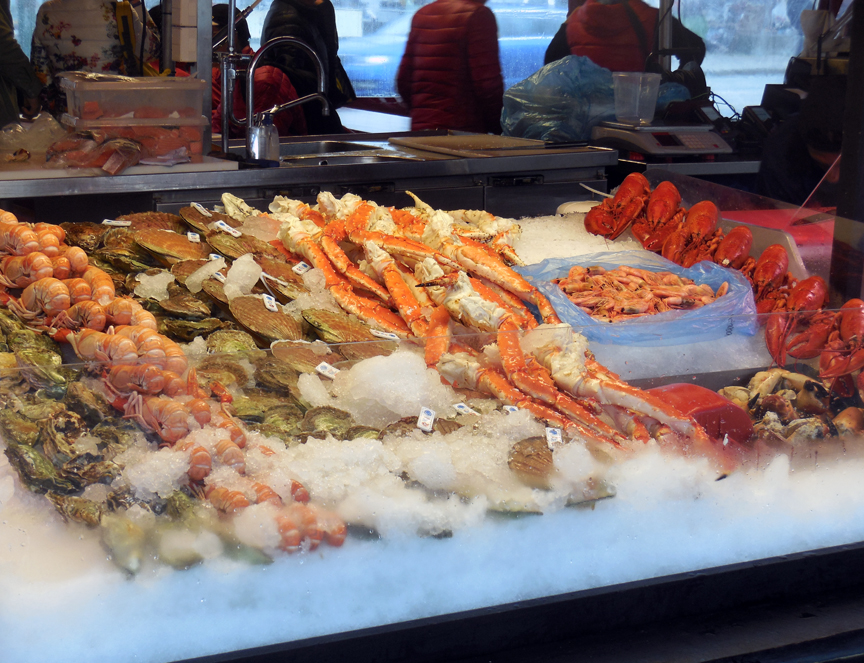 Bergen is also known for its fish market. All varieties of seafood that the North Sea can produce—including whales and sharks—are sold here, raw and cooked. Norway is one of three countries that still permits whaling (the others are Finland and Japan) which doesn't make Greenpeace happy.