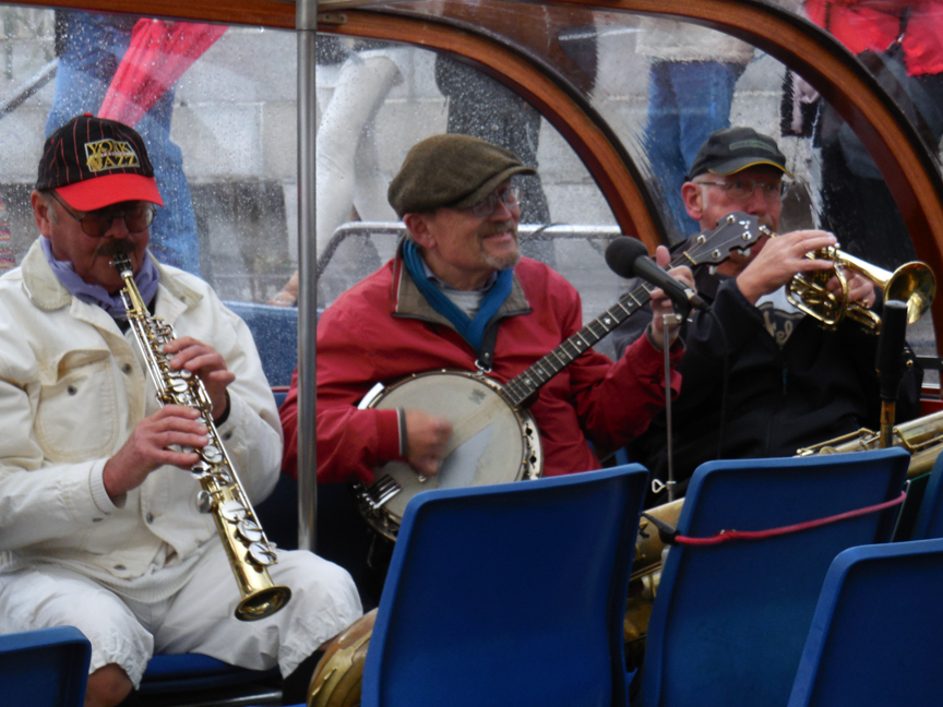 Copenhagen was very, very Danish. We saw The Little Mermaid, and we saw a Not-So-Little Mermaid too. As an optional tour we added an “Evening Jazz Tour” in a canal boat where five old guys played vintage jazz and Dixieland music.