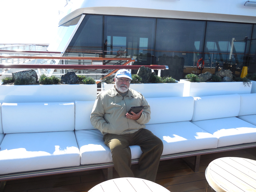 As to the passengers, well, to paraphrase Katherine Anne Porter, it was a “Ship of Geriatrics.” Very well-to-do geriatrics at that. If there were as many as 40 passengers under the age of 55 I’d be surprised. We (both in our late 60’s) were probably on the younger end of the age-distribution curve. Everyone was friendly and we sometimes shared a table in The Restaurant as a way to meet people.